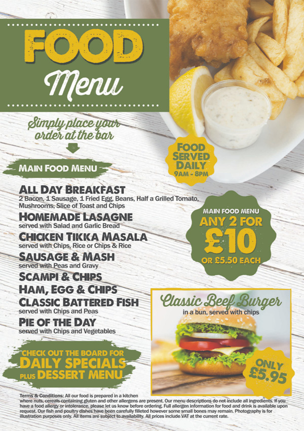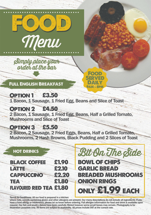 Food Served from 10 am and 9am at